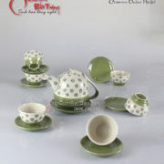 Bộ ấm chén đầm hoa thị với chất liệu gốm sứ cao cấp của Bát Tràng. Bộ ấm chén đầm hoa thị được đốt trong lò với nhiệt độ 1300 độ C, nên các chất độc hại được khử hết đảm bảo sức khỏe cho người sử dụng.
