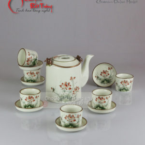 Hãy là người đầu tiên nhận xét “Bộ ấm chén men kem Tròn vẽ Hoa Sen và 4 Phụ kiện”