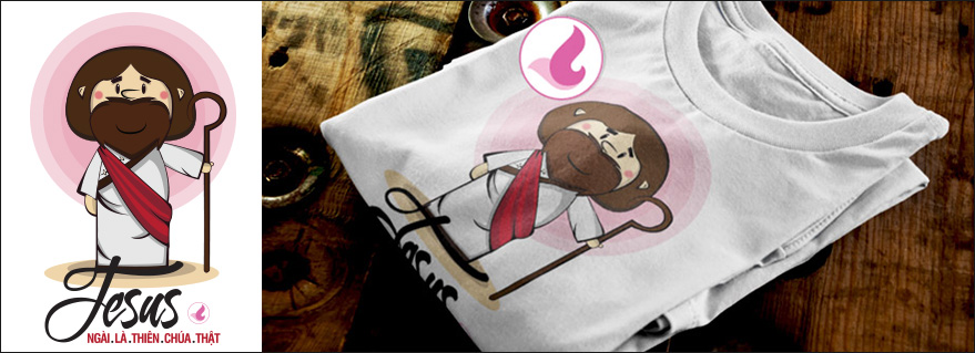 Mẫu này rất đẹp nhé! Mình in và bán được rất nhiều mẫu này! Hình ảnh Chúa Giêsu cực dễ thương, thích hợp sử dụng cho các em lớp giáo lý làm áo đồng phục!